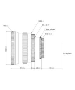 Adopting a triplet optical design, this 0.8x reducer supports a 44 mm, full-frame image circle. The overall weight is just under two pounds. The back focus from the M48 thread is a standard 55 mm. The front thread is M84x1. At the camera end, this reducer has M54x0.75 and M48x0.75 adapters. At the same time, it has an internal M48x0.75 2-inch filter thread to accept 2-inch filters for astrophotography. The CNC machined metal dust caps at each end of the reducer prevent dust and protect the optics when not in use.